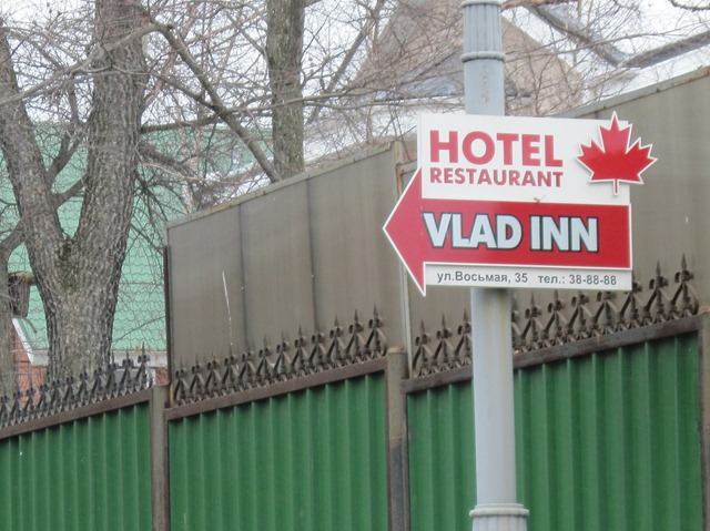 VMI signVlad Motor Inn is a very nice place.  The rooms are nice, it’s very clean.  The food at the restaurant is just excellent.  And most of the staff speaks English, to varying degrees.  So really I am very comfortable here.  (Contrasted with the Hotel Planeta in Minsk where I had to use all of my cunning and physical dexterity to take a shower-it was more of a puzzle game).  The one thing that stands out is that the restaurant only plays Eric Clapton’s Greatest Hits.  Literally.