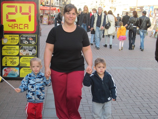 We had an adventure today because we decided we needed strollers.  We didn’t get strollers before we left, because we thought it would be okay, but after these 3 days, we decided that they would be very helpful.  (And after walking with them down to Arbat street-two blocks away… they crashed and burned pretty quickly.  Strollers would be a good thing.)